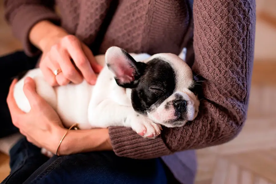 Es una forma de establecer y profundizar el vínculo con nosotros. Un buen vínculo genera confianza y tranquilidad y, por lo tanto, ayuda al cachorro a estar más tranquilo y relajado, también a la hora de dormir. Los demás consejos son los mismos que para un perro adulto, básicamente quemar energía y no tener deseos de evacuar ni hambre.